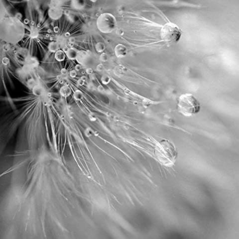 Dandelion Print 8×8, 10×10, 12×12, 20×20, Black and White Art, Mist Rain Water Drops and Bubbles Macro Photography, Grey Bathroom Wall Art, Shabby Chic Wall Decor, Nursery, Baby Girl Artwork