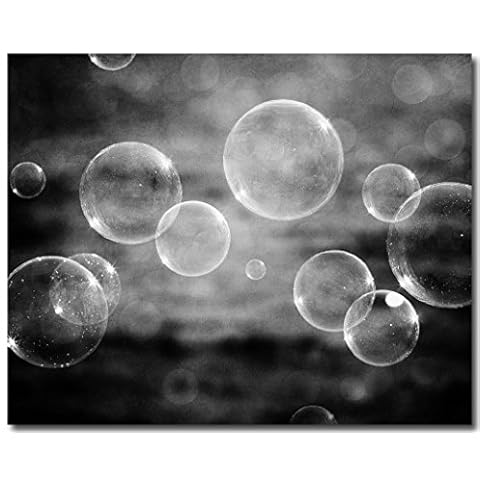 LISA RUSSO FINE ART – Black and White Bathroom Wall Art 8×10” Unframed Print – Bubbles Picture for Kids Bathroom Decor, Abstract Nursery Artwork, Bath Picture – Not Framed