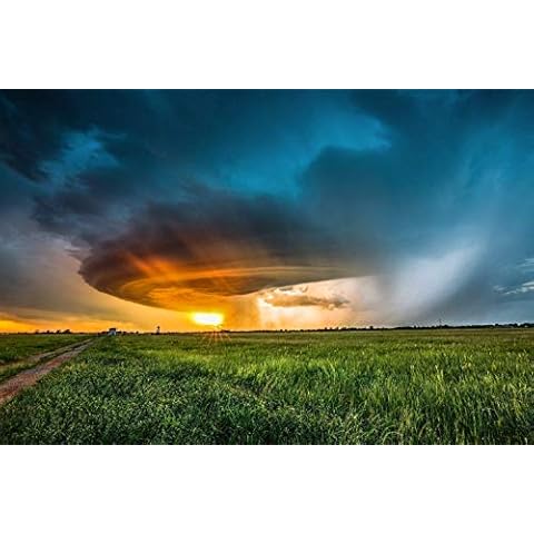 Storm Photography Print (Not Framed) Picture of Supercell Thunderstorm Illuminated by Sunlight at Sunset on Spring Evening in Oklahoma Nature Wall Art Weather Decor (4″ x 6″)