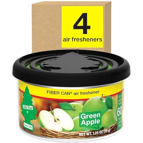 LITTLE TREES Car Air Freshener. Fiber Can Provides a Long-Lasting Scent for Auto or Home. Adjustable Lid for Desired Strength. Green Apple, 4 Air Fresheners