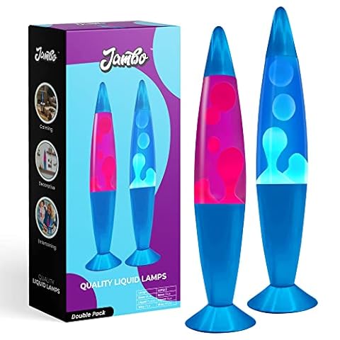 Jambo 16-Inch Beautiful Liquid Lamp- Blue Base, Blue Liquid, White Wax & Blue Base, Purple Liquid, Pink Wax Double Pack, Night Light Home Decor Living Room Bedroom Lamp for Adults, Teens, and Kids