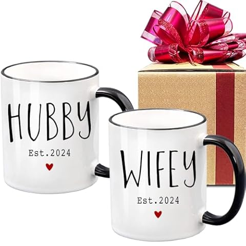 Dnuiyses Wedding Gift for Couples, Est 2024 Hubby Wifey Mugs Set 11oz, Promoted to Be Hubby Wifey Wedding Gift, Wedding Gift to Give, Couples Birthday Christmas Coffee Mug, Wedding Gift for Newlywed