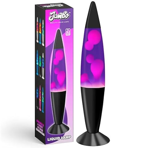 Jambo 16-Inch Beautiful Lamp with Wax, Relaxing Night Light Home Decor, Extra Tall, Living Room Office Bedroom Lamp for Adults, Teens, Kids (16″, Black Base, Purple Liquid, White Wax)
