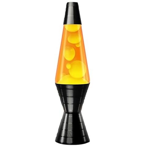 LAVA Lamp 14.5” Vinyl Record Grooved Base – The Original Motion Light – Yellow Wax and Orange Liquid – 2017