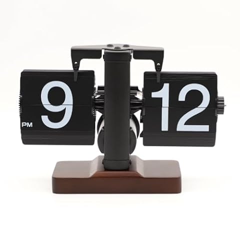 Itigoitie Walnut Wood Base Flip Down Clock,Retro Digital Flip Desk Clock,Vintage Design Auto Flip Clock,Battery Operated Digital Display,Home and Office Decorations(No Battery Included)-Black