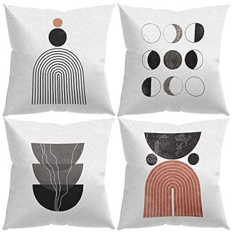 Abstract Geometric Boho Sun Moon Phase Black Line Rainbow Mid Modern Century Throw Pillow Cover,18 x 18 Inch Pillow Cover,Boho Gifts for Women Girls,Bohemian Home Bedroom Living Room Decor,Set of 4