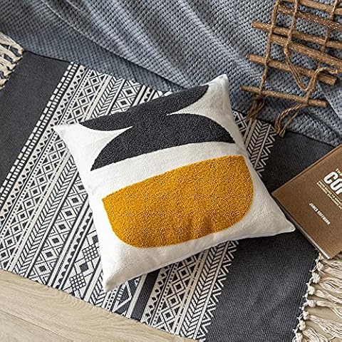 VANNCIO Square Bohemian Decorative Pillow Cover, Abstract Cotton Hand Woven Throw Pillowcase for Boho Bedroom Living Room, Modern Decor Home Cushion Sham 18×18, 1PC(Black Mustard)