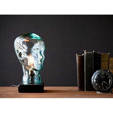 • Unique Steampunk glass head table lamp with Edison bulb and weathered wood base