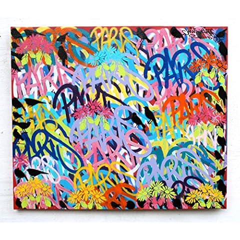 • CHRIS RIGGS Original Paris Love Peace fine art flower painting 43″ x 36″ pop street art spray paint NYC acrylic contemporary modern art urban canvas