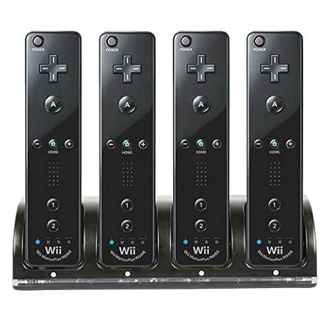 • Wii Remote Controller Charger, 4 in 1 Wii Charging Dock Station with 4PCS 2800mAh Rechargeable Batteries for Wii/Wii U Controller-Black