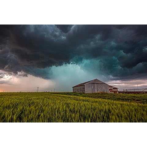 Storm Photography Print (Not Framed) Picture of Supercell Thunderstorm Over Farmhouse on Spring Day in Colorado Weather Wall Art Nature Decor 4×6 to 30×45