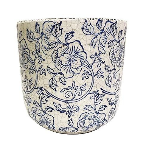 Old World Ceramic Blue and White Foral planters or Garden pots