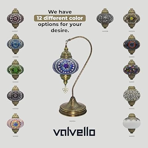 VALVELLO Turkish Moroccan Mosaic Swan Neck Lamp, Night Light, Tiffany Style, Vintage, Decorative Glass Table Lamp for Bedroom, Office, Living Room, Gift for Special Days/Person (Blue)