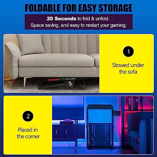 Folded for storage: After enjoying the game, you can easily fold this racing wheel stand and store it under your couch/bed or in the corner, making it a perfect choice for players with limited storage space. The compact design allows you to carry it anywhere to keep your gaming enthusiasm with you.