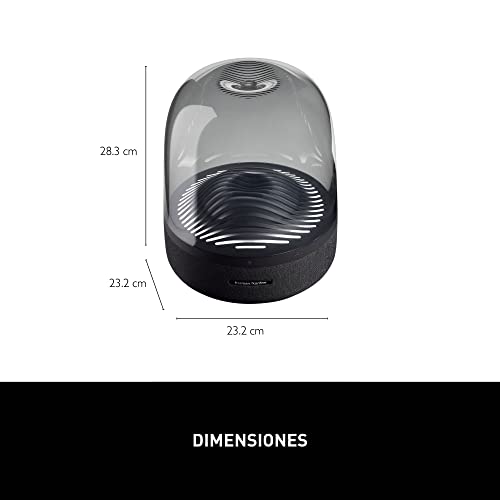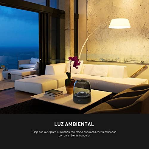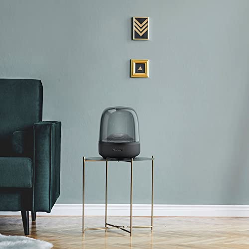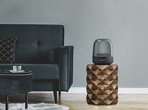 Elevate your home with the timeless, iconic design of the Harman Kardon Aura Studio 3 for 360 degrees of beautiful sound. A stunning Bluetooth speaker that looks as good as it sounds. It pairs room-filling audio with integrated ambient light effects, a water wave ripple movement to experience your music in a new, visually dynamic way. With a domed design as understated as its small footprint, this piece blends in beautifully with your décor, in any room of your home