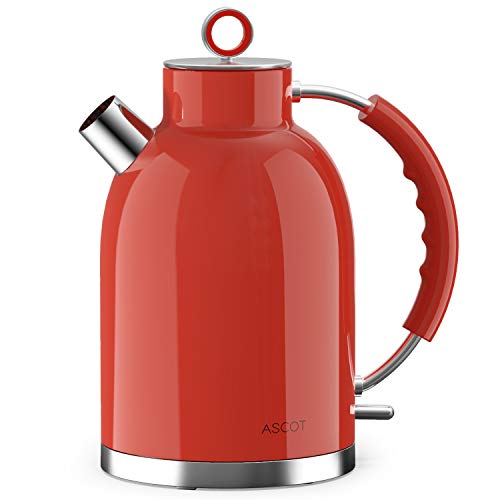 Electric Kettle, ASCOT Electric Tea Kettle, Stainless Steel Kettle Water Boiler, Fast Boiling Kettle, 1.7L, 1500W, BPA-Free, Cordless, Automatic Shutoff, Boil-Dry Protection, Red