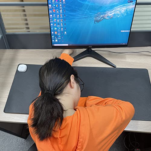 [Safety, Waterproof, and Electricity-proof Four Layers]: A desk hand warmer made of protective film, waterproof PVC leather, heating layer, non-slip pad. Water is accidentally spilled on the warm desk pad, just wipe it clean gently, there will be no water seepage phenomenon.The switch has a built-in overcurrent protection device to prevent electric shock.
