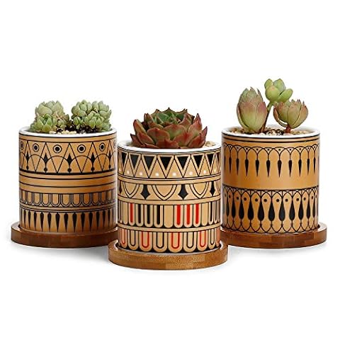 WITH DRAINAGE AND FILTERS: Good drainage is often hit or miss, because many small pots for plants don’t have any drainage holes. But we have good sized holes AND little mesh filters to place over them which stops soil from leaking out! And the included bamboo trays catch excess water – smart, and tidy.
