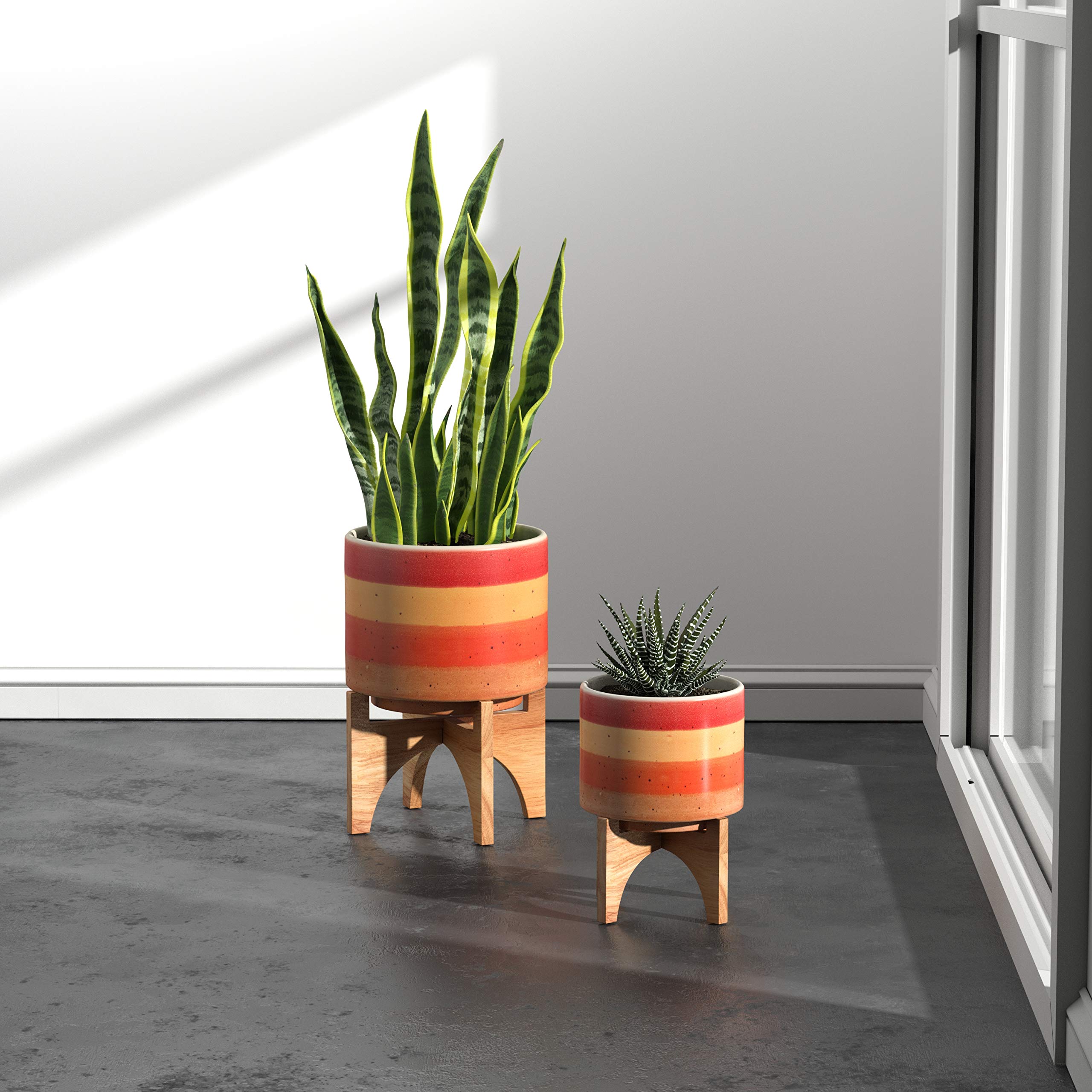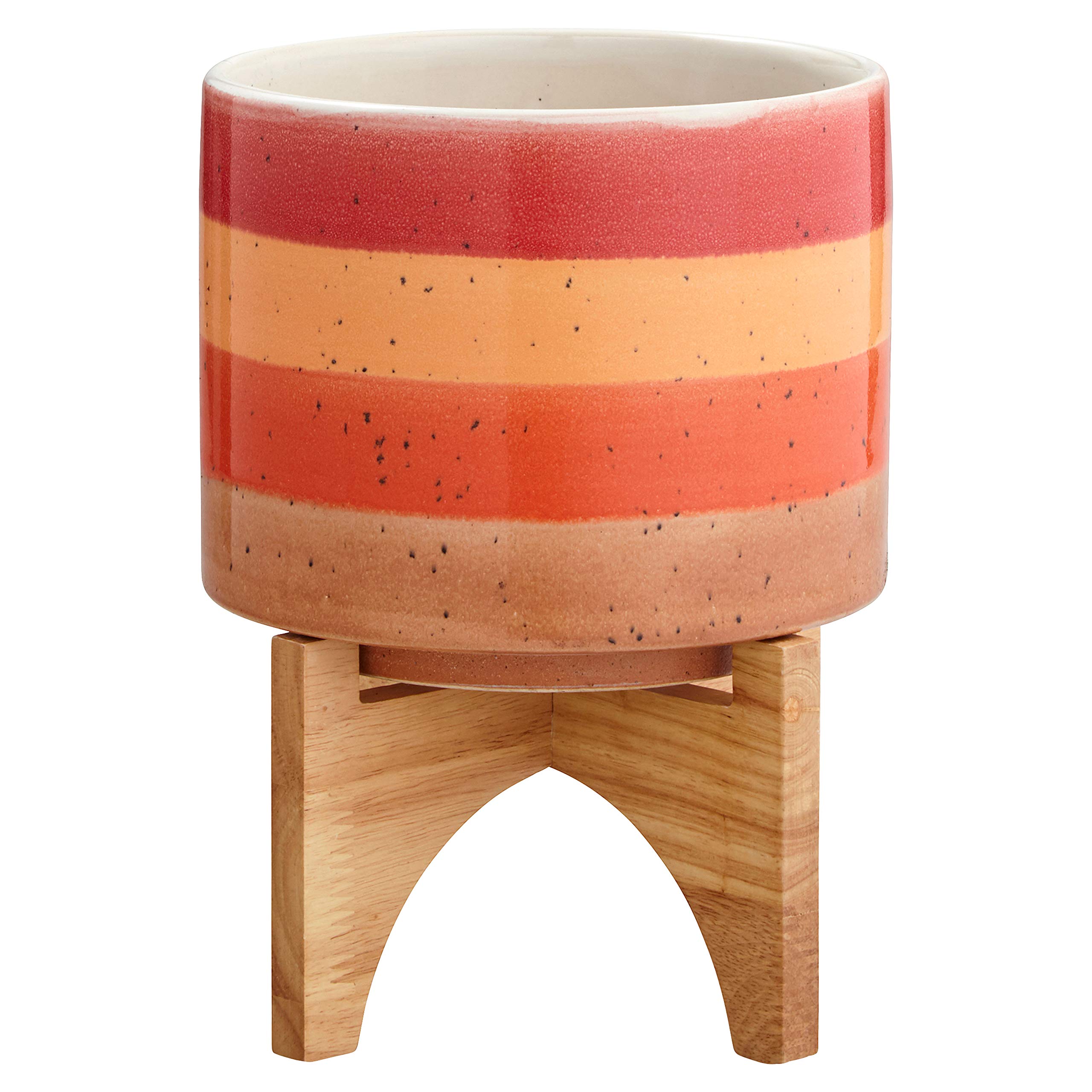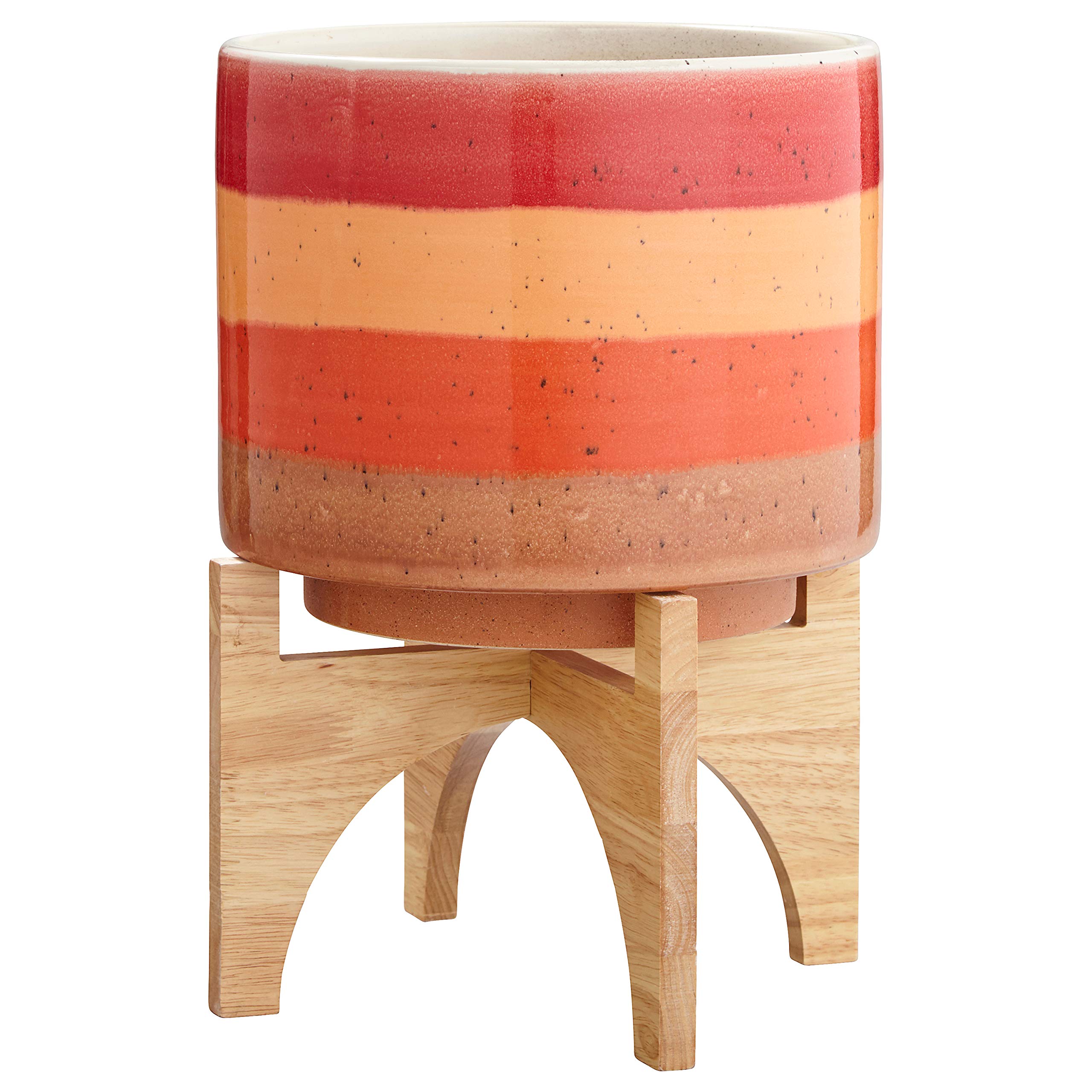 Rivet Mid Century Modern Ceramic and Bamboo Planter Flower Pot with Stand