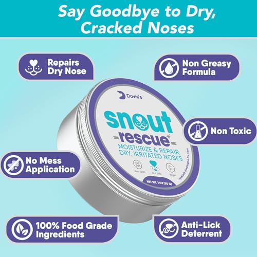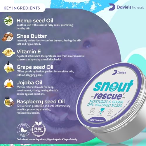 Davie’s Snout Rescue – Dog Nose Balm for Dry Nose, All-Natural Nose & Paw Balm for Dogs and Cats, Soothes, Protects & Repairs Dry, Cracked Snouts & Paws, Hypoallergenic, Vegan, Made in USA – 1oz