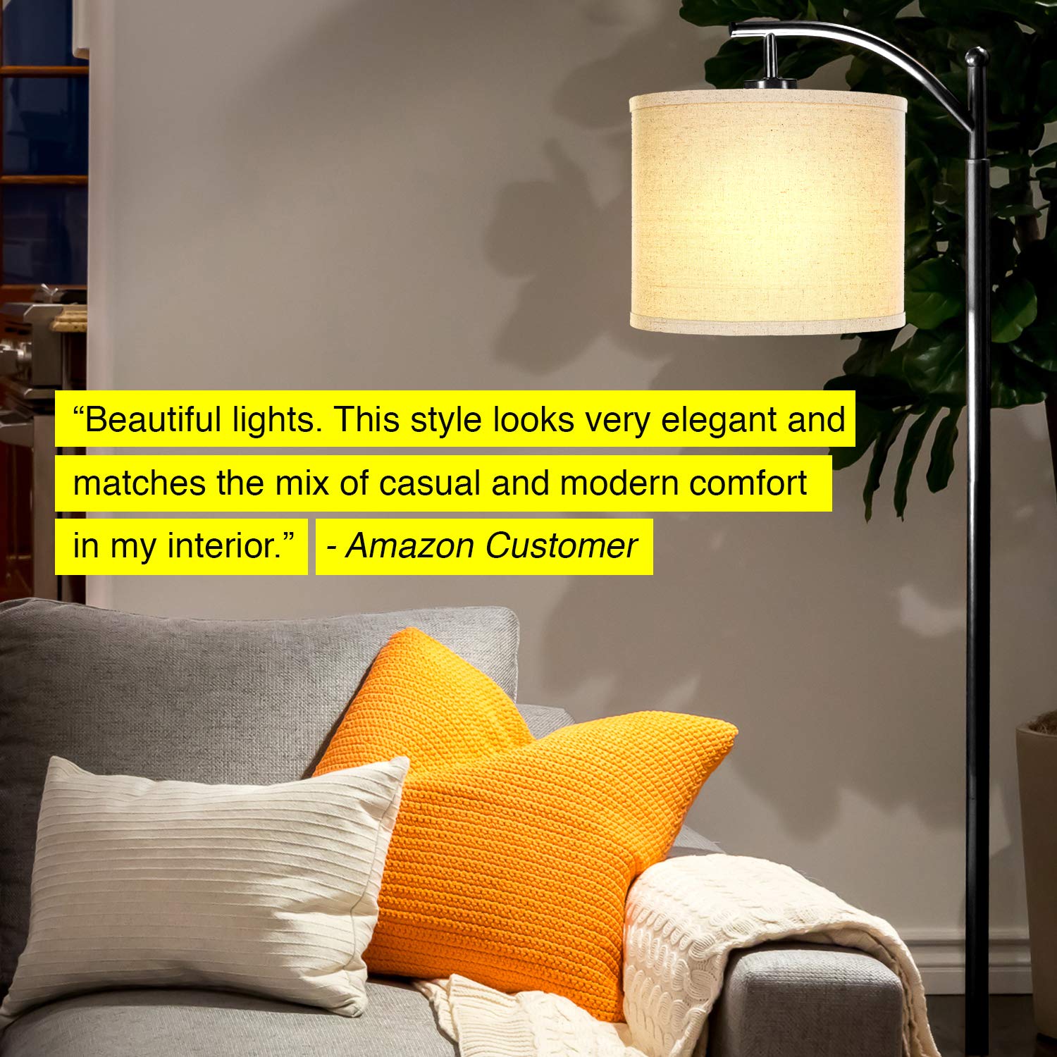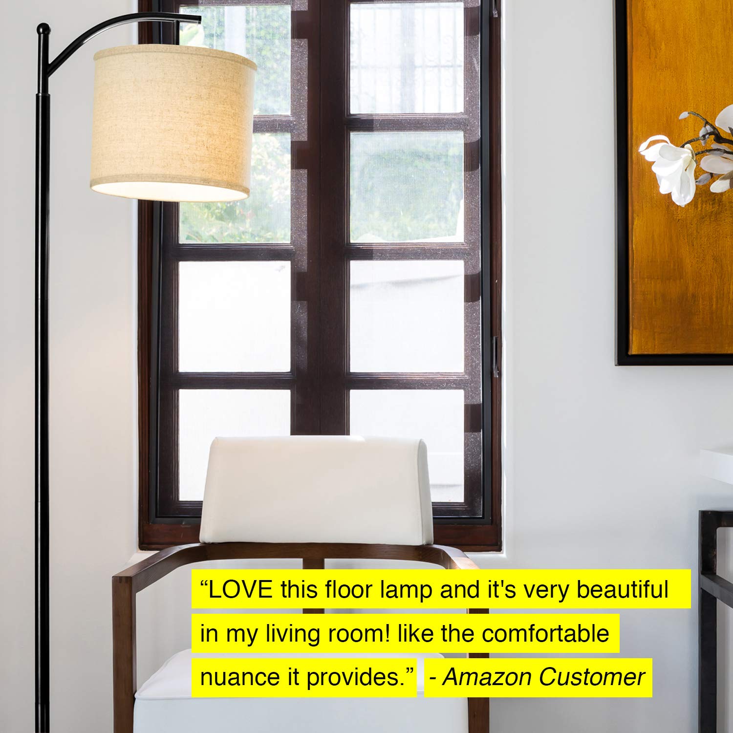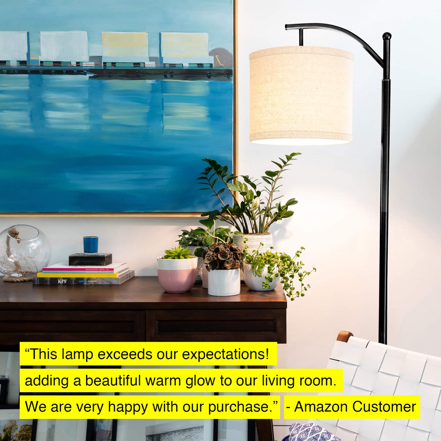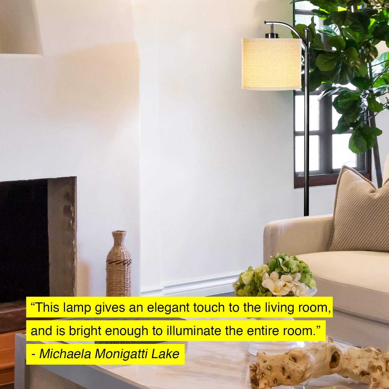 Brightech – Montage LED Floor Lamp – Black, Glossy Noir Stem with Oatmeal Hue Drum Shade – Sophisticated Look, Affordable Price – Includes LightPro LED 9.5-Watt Bulb