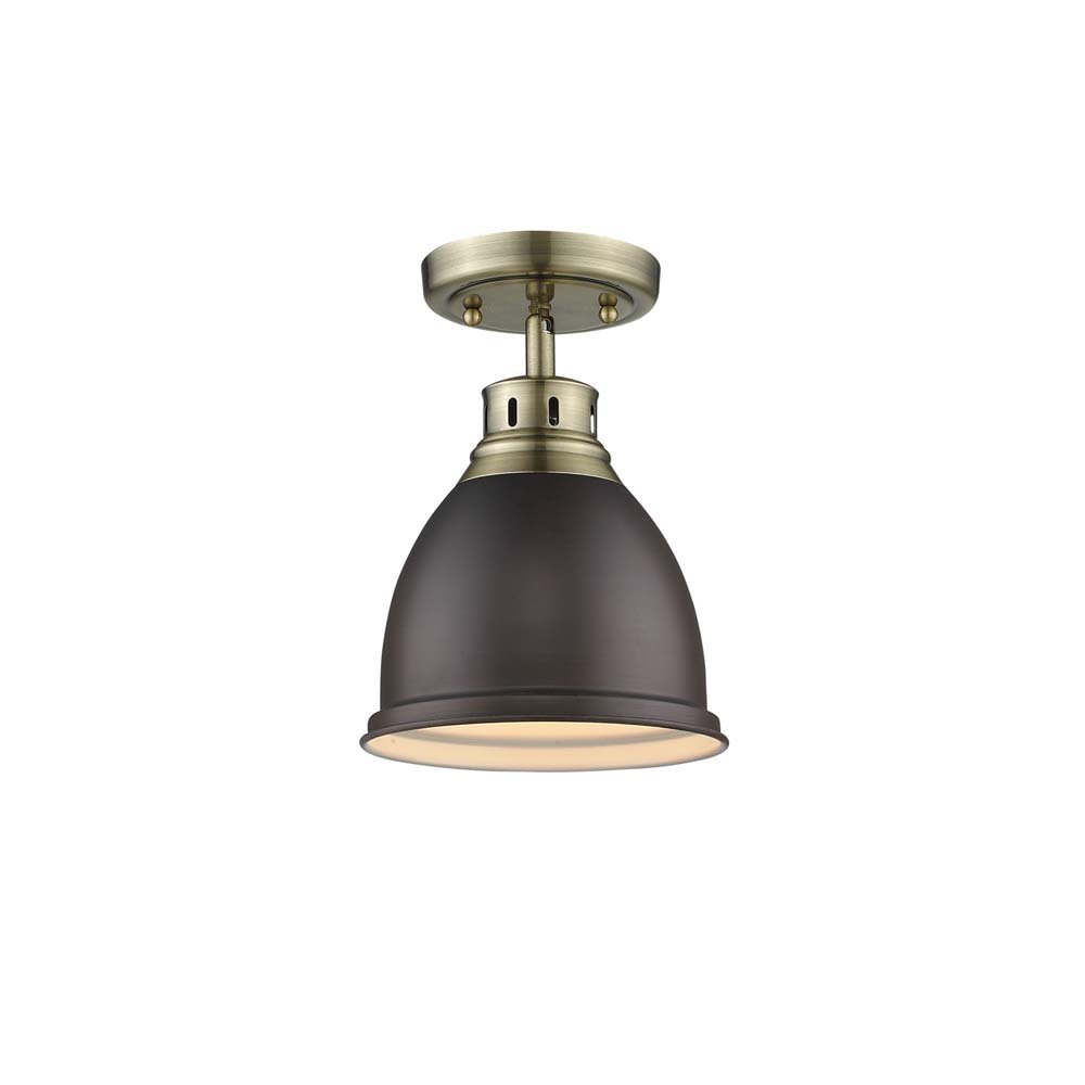Golden Lighting 3602-FM AB-RBZ Duncan Flush Mount, 8.875″ L x 8.875″ W x 11.5″ H, Aged Brass with Rubbed Bronze Shade