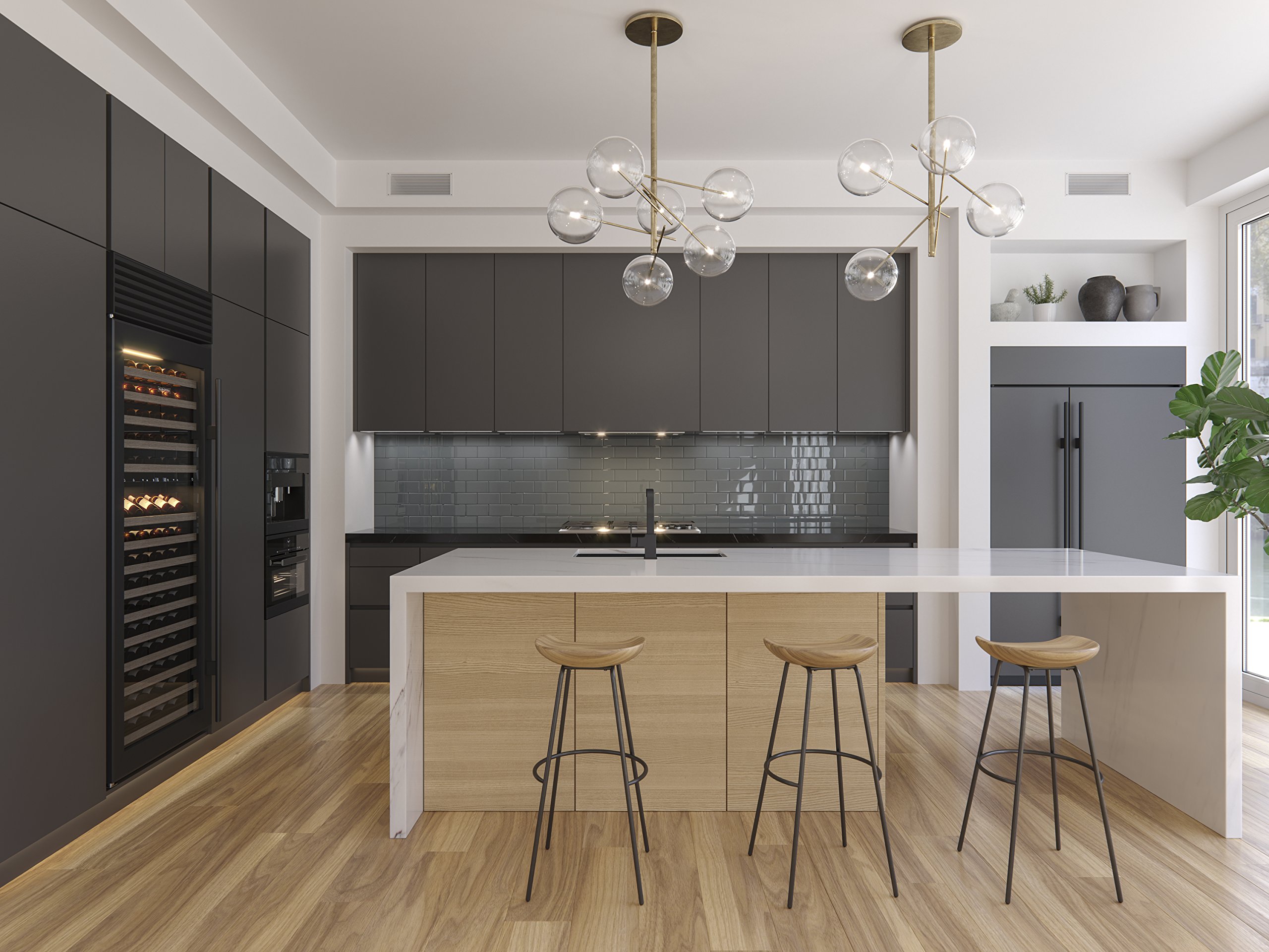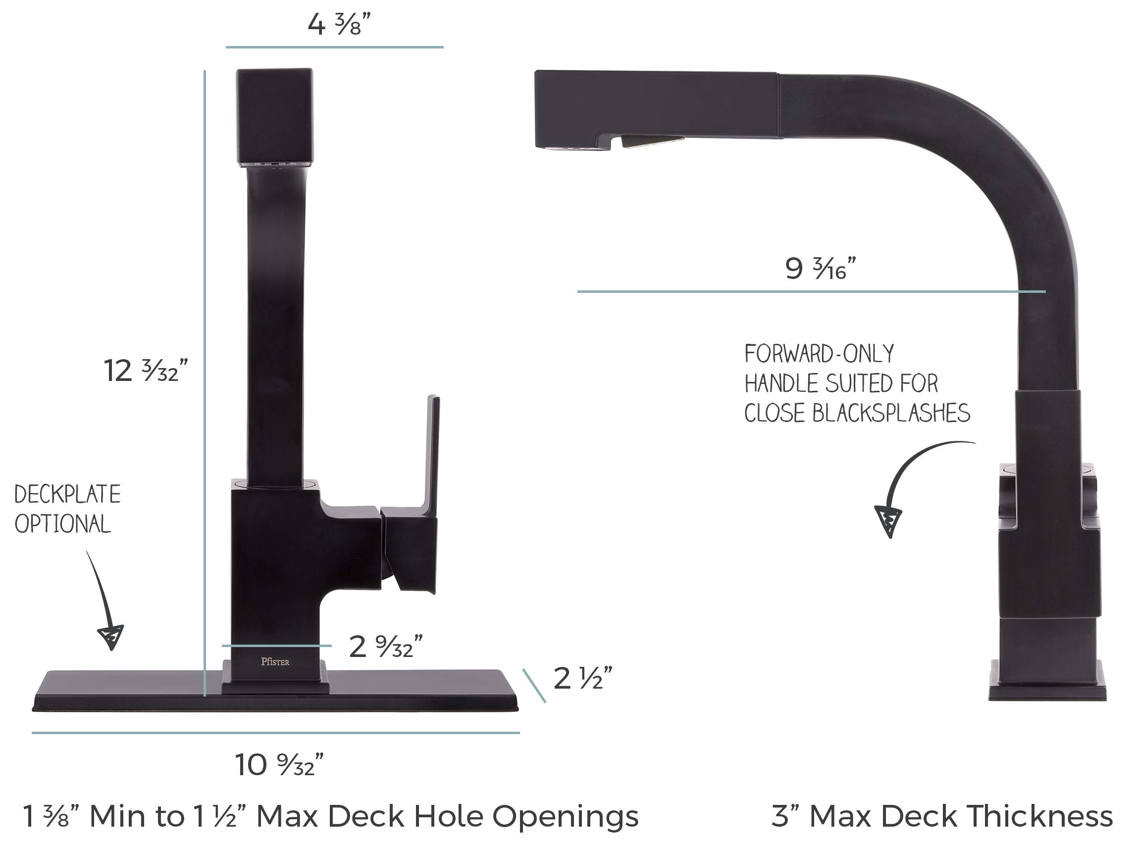 Forward-only lever handle for compatibility with close backsplashes. 1 or 3 hole installation