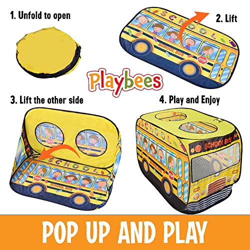 Musical School Bus Pop Up Play Tent with 3 Openings – Tent for Toddlers – Indoor & Outdoor – Pop Up Tents for Kids – Includes Carry Bag and Sound Button- 43.5x28x26.5 Inch